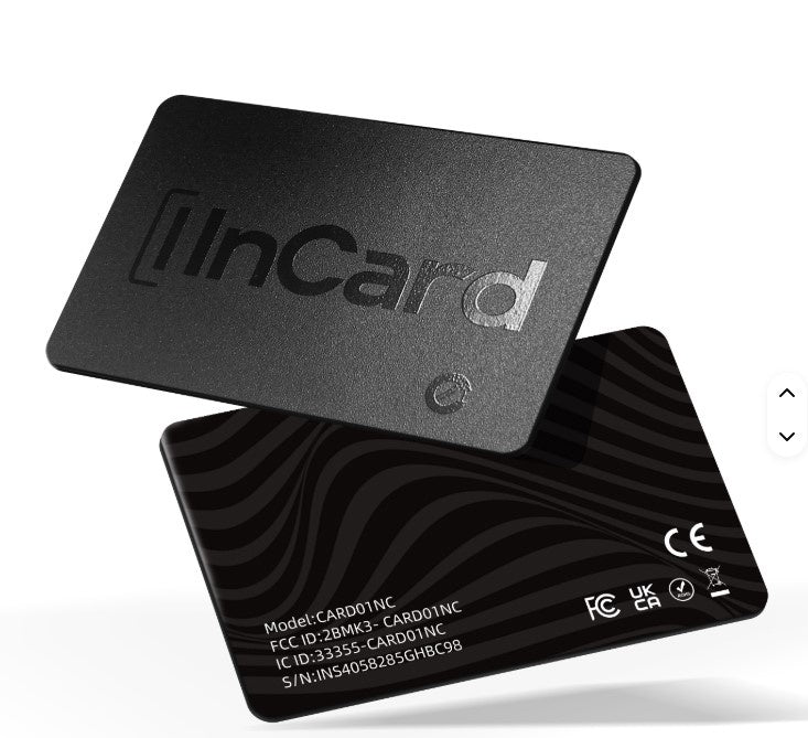 IInCard Bluetooth tracking device for wallet, works on IPhone (Apple Find My) and Android (Find My Device)