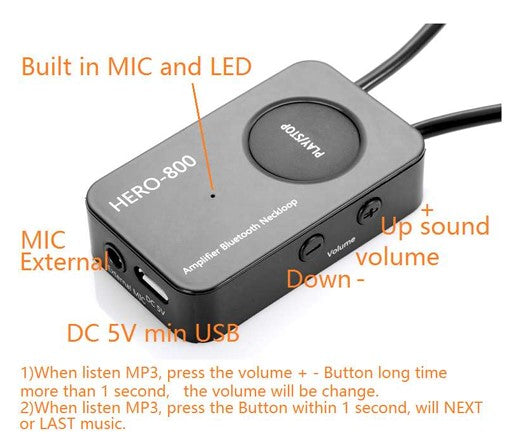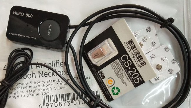 Includes: 1pc HERO-800 Bluetooth Neck loop headset, 1pc earpiece, 1pc USB charger and 1pc charging cable, 2pc #337 lithium coin cell batteries and 1pc User manual.