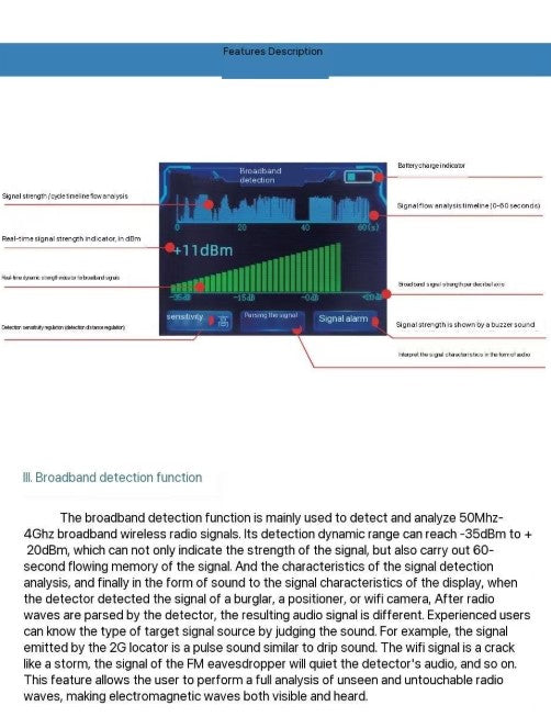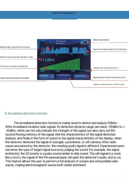 1. 10mhz-4ghz wideband radio wave detection analysis